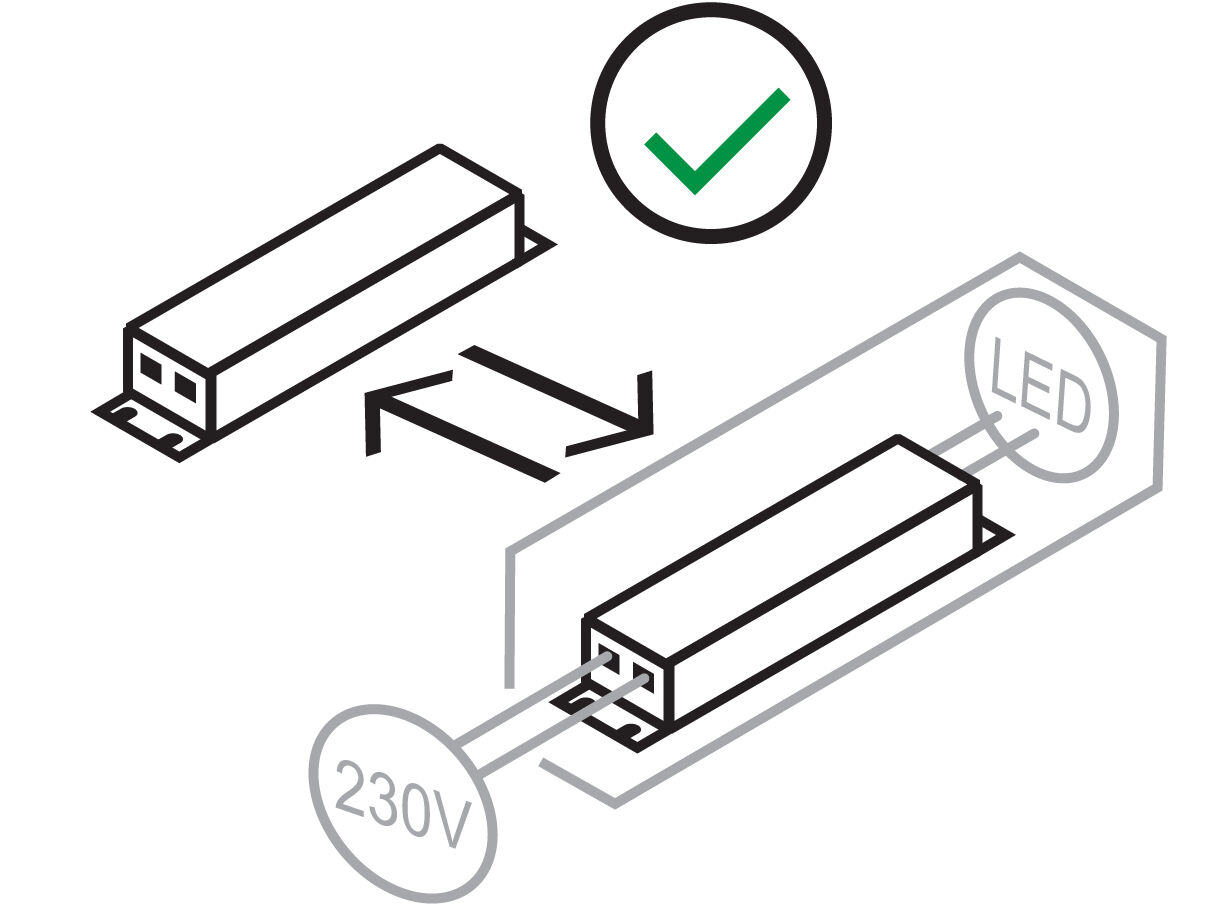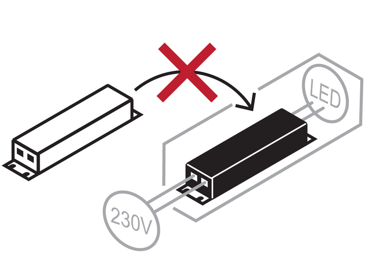 Damit LED-Lampen richtig funktionieren, muss ein Konverter verwendet werden, der auch als LED-Treiber bezeichnet wird. LED-Lampen arbeiten mit einem niedrigen, konstanten Gleichstrom, während unser Stromnetz mit Wechselstrom arbeitet. Daher ist ein elektronisches System zwischen dem Stromnetz und der Lampe erforderlich, um den Stromfluss umzuwandeln und zu regulieren. Eine fehlerhafte oder ungeeignete elektronische Versorgung äussert sich in einem Flackern oder einem Ausfall der LED-Lampe. Dies liegt daran, dass das elektronische Netzteil nicht den richtigen Stromfluss liefert. Es ist möglich, dass sich die elektronische Stromversorgung ausserhalb der Leuchte befindet, z. B. im Stecker oder separat. Andererseits kann sie auch in der Leuchte selbst installiert sein. Retrofit-LED-Lampen, d. h. LED-Lampen mit herkömmlichen Fassungen wie E27 oder G9, sind LEDs mit eingebautem elektronischem Netzteil. Defekte LED-Leuchten weisen häufig ein defektes elektronisches Netzteil auf, da die LEDs selbst nur sporadisch Schäden aufweisen.